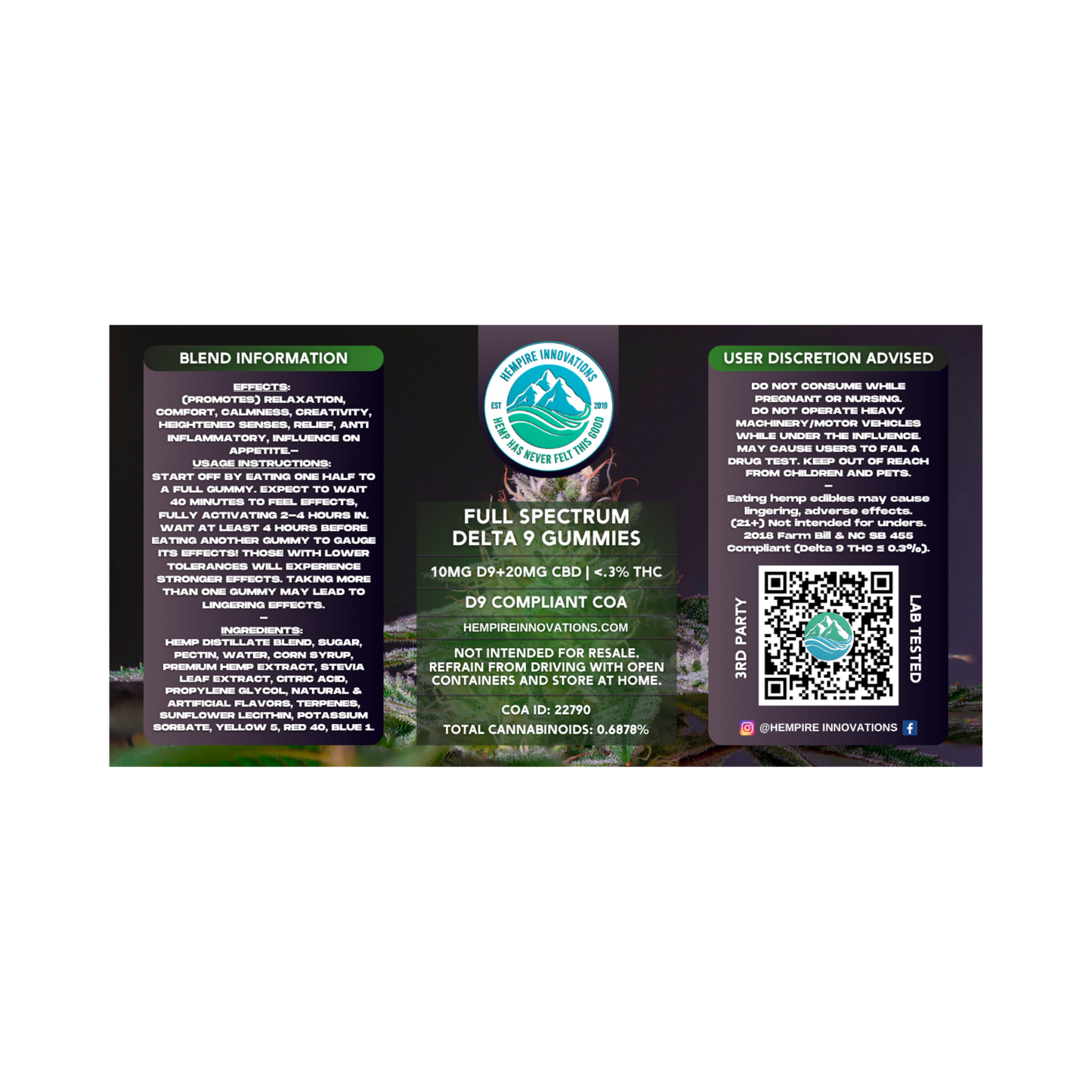 Yes. Delta 8 THC is federally legal under the 2018 Farm Bill and NC HB 455 (2022). Our gummies are vegan, third-party tested, and made from U.S.-grown hemp for purity and consistency.